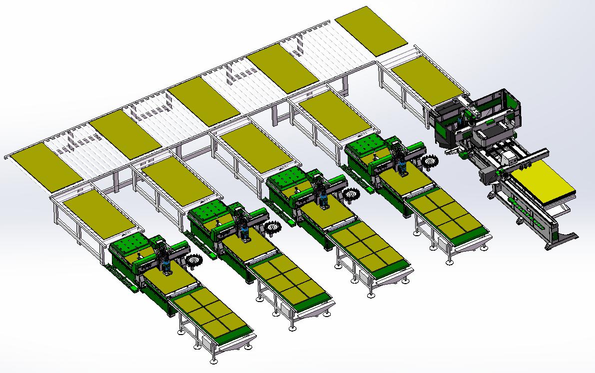 例如:品脈一拖四門板生產線,采用一套全自動貼標木工加工中心,搭配四臺雙刀庫高精度絲桿加工中心,通過分流加工最大化實現整體生產效率。可根據工廠布局和產量為您量身定制適合的智能生產線!本身品脈數控就有成熟的數控開料機設備的生產經驗,也有板式家具生產線工業4.0的生產能力,所以綜合各個方面,選擇櫥柜門板生產線的話,品脈數控您可以重點考慮。